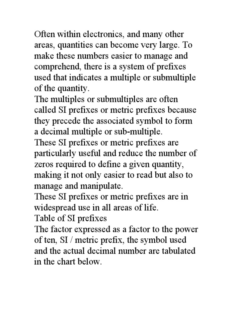 SI Prefixes Table PDF International System Of Units Cultural