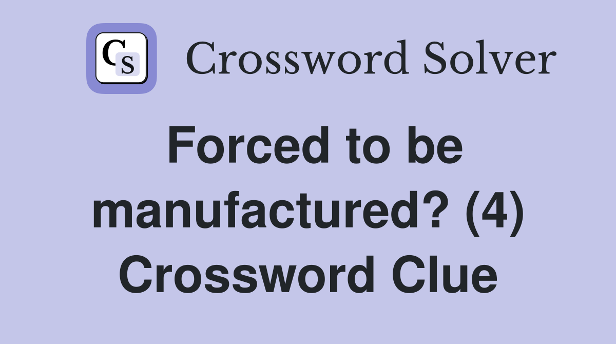 Forced to be manufactured? (4) Crossword Clue Answers Crossword Solver