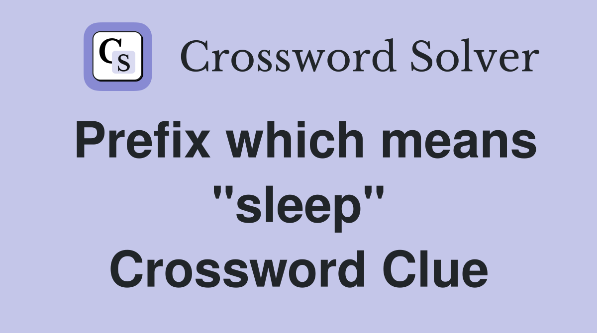 Prefix which means quot sleep quot Crossword Clue Answers Crossword Solver