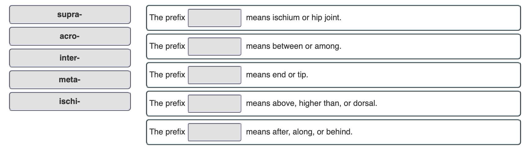 Solved supra The prefix means ischium or hip joint acro Chegg com