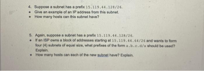 Solved 4 Suppose a subnet has a prefix 15 119 44 128/26 Chegg com