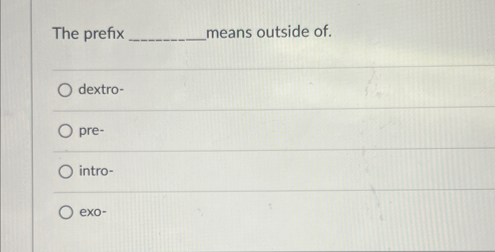 Solved The prefix means outside of dextro pre intro exo Chegg com