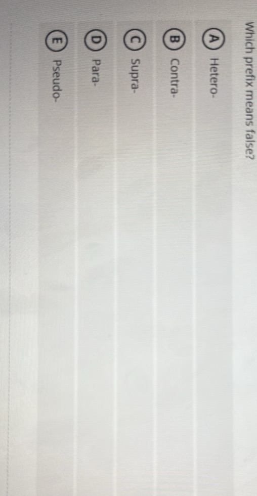Which prefix means false? (A) Hetero (B) StudyX