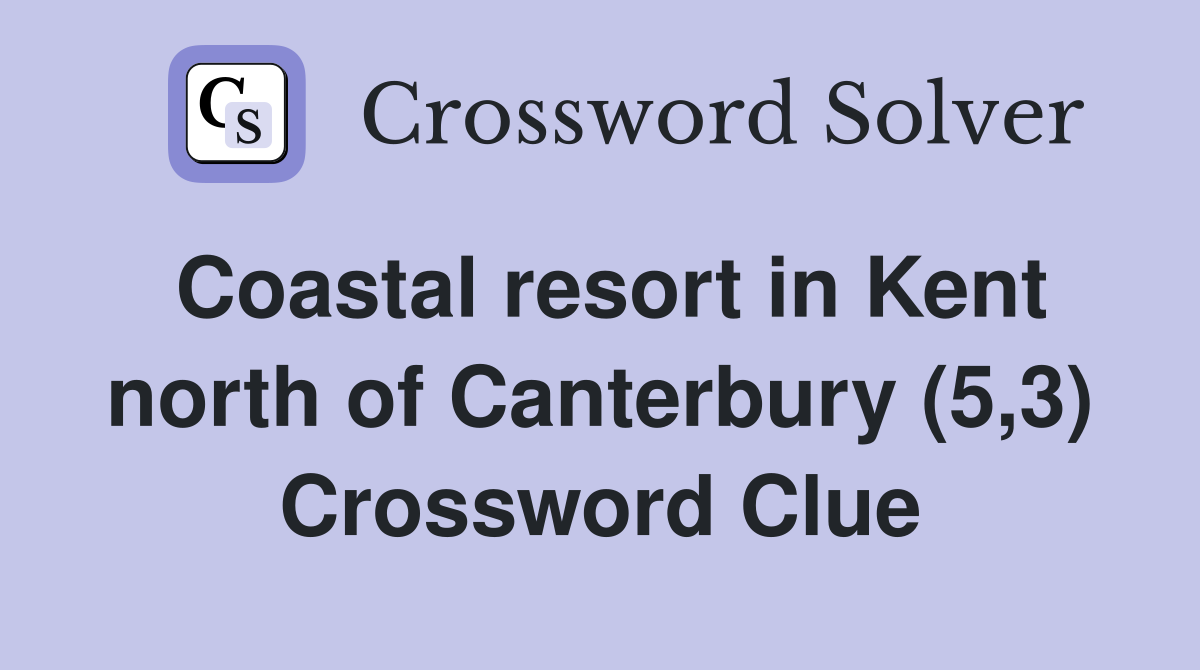 Coastal resort in Kent north of Canterbury (5 3) Crossword Clue