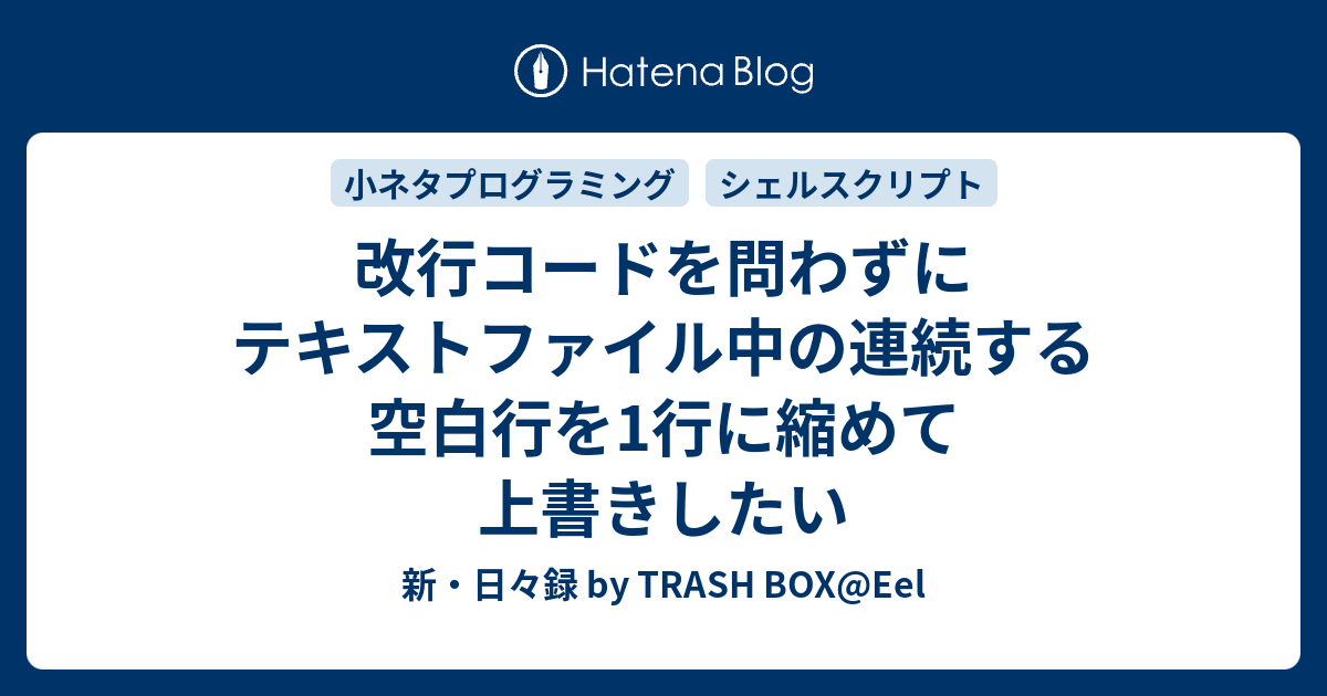 改行コードを問わずにテキストファイル中の連続する空白行を1行に縮めて上書きしたい 新・日々録 by TRASH BOX Eel