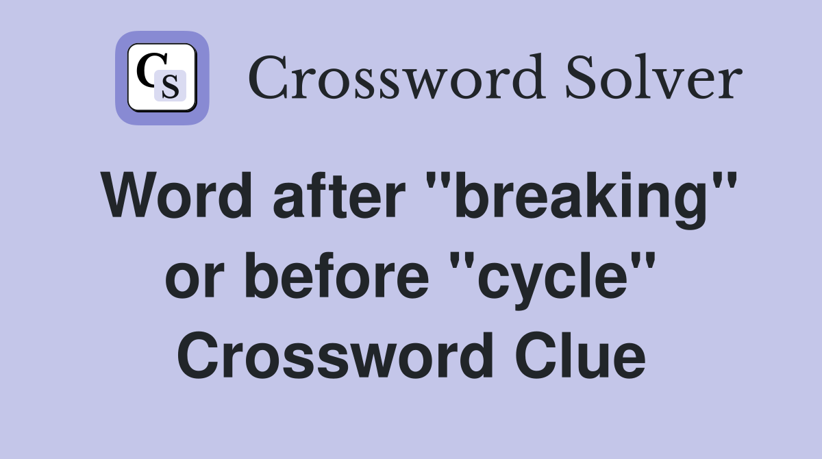 Word after quot breaking quot or before quot cycle quot Crossword Clue Answers