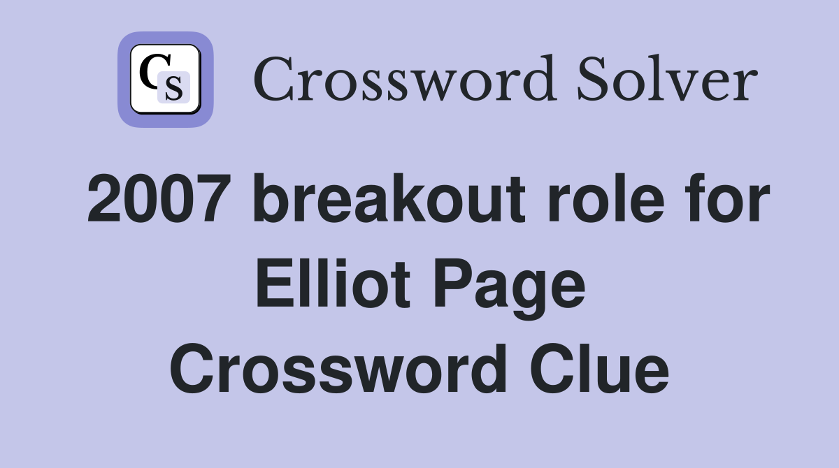 2007 breakout role for Elliot Page Crossword Clue Answers Crossword