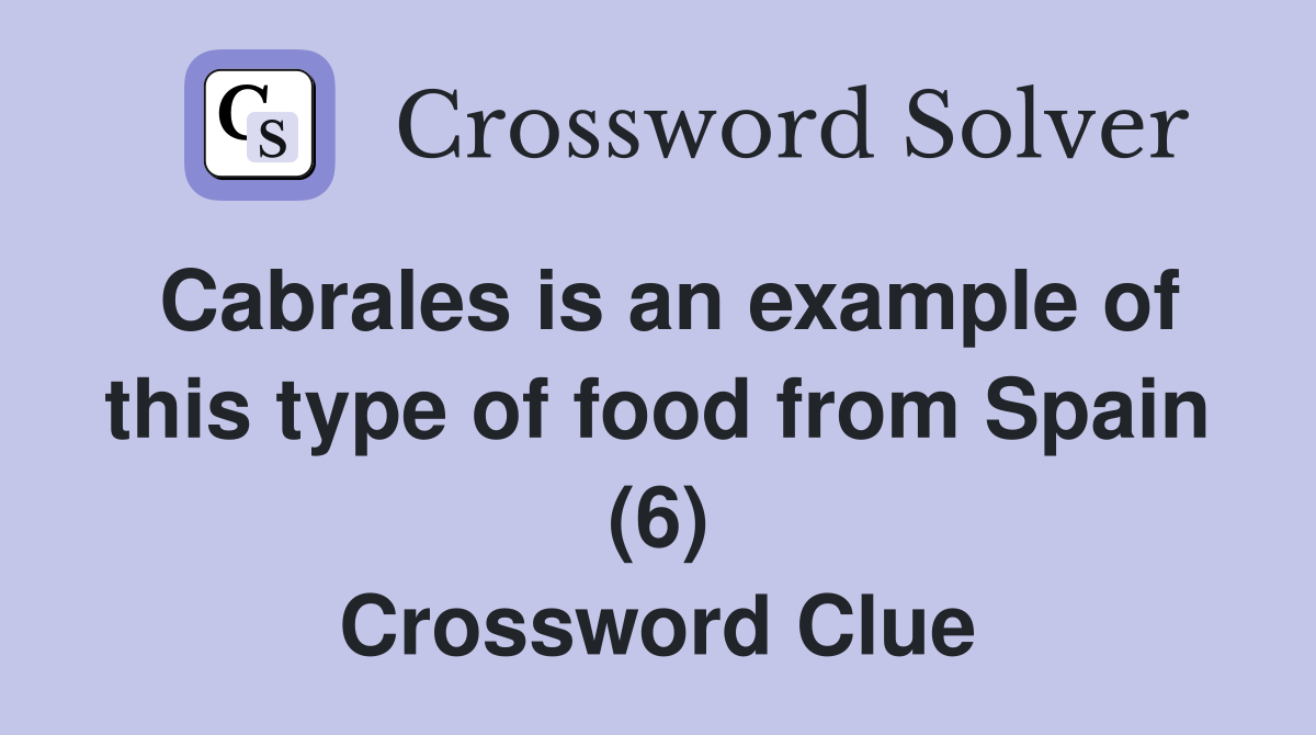 Cabrales is an example of this type of food from Spain (6) Crossword