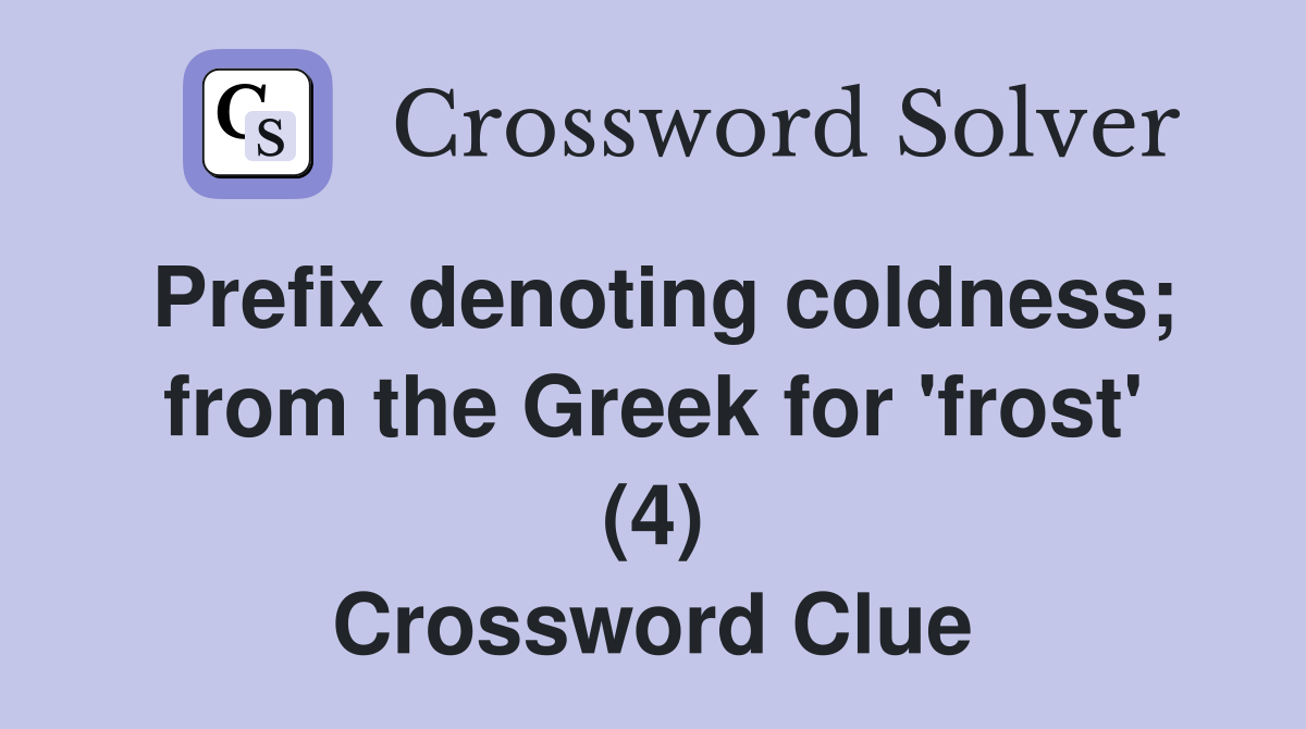 Prefix denoting coldness from the Greek for #39 frost #39 (4) Crossword