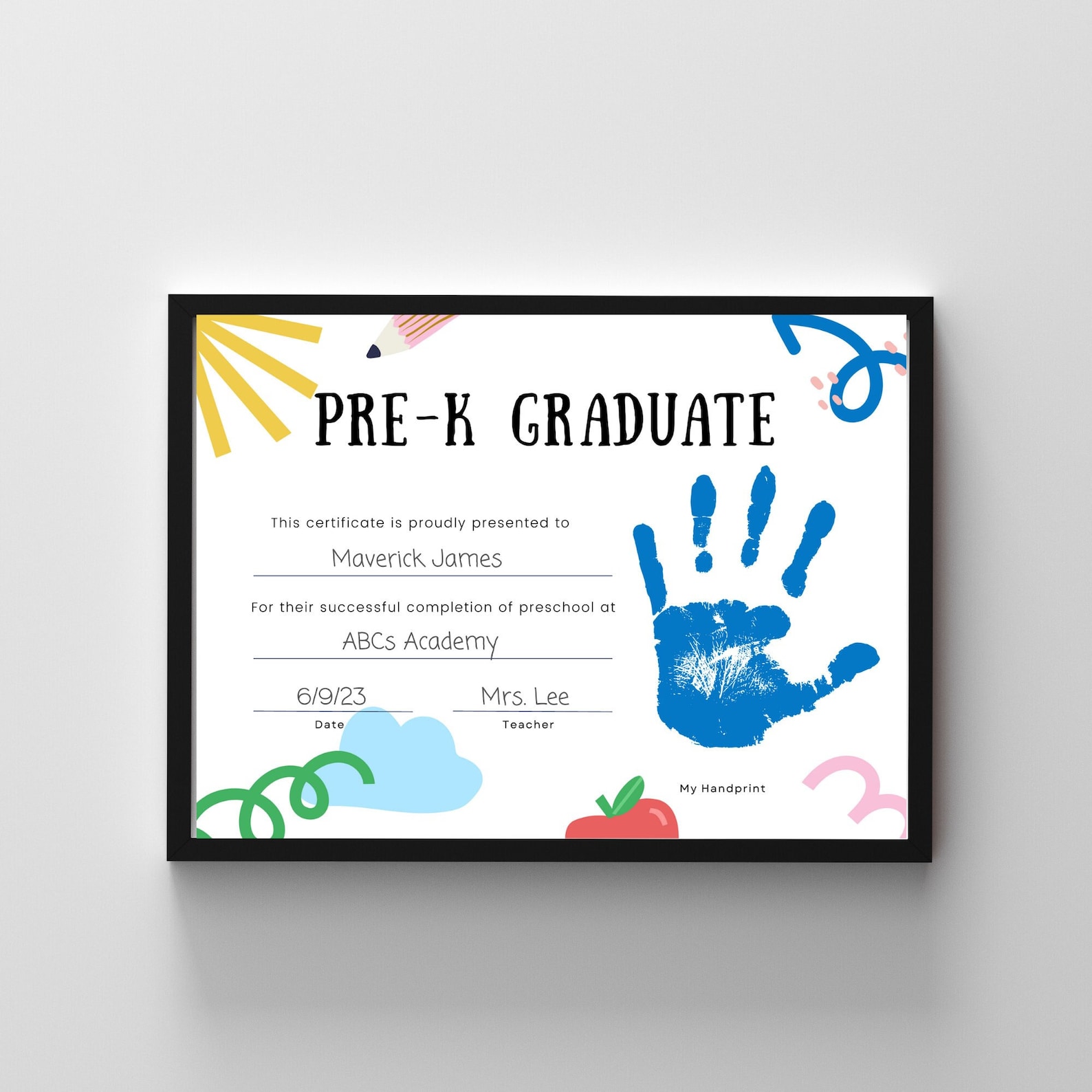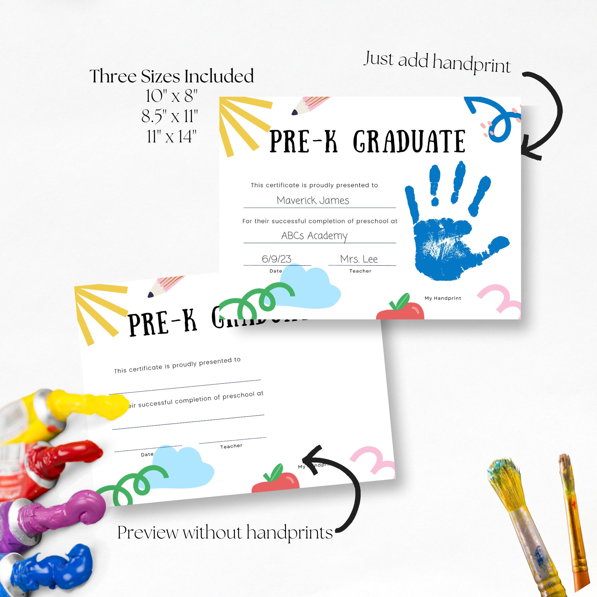 Preschool Graduation Certificate Handprint Printable 8X10 Sign