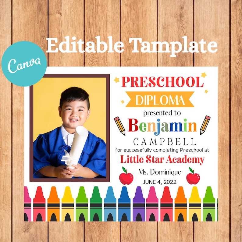 Editable Preschool Diploma With Photo Preschool Graduation Certificate