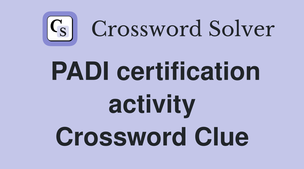 PADI certification activity Crossword Clue Answers Crossword Solver