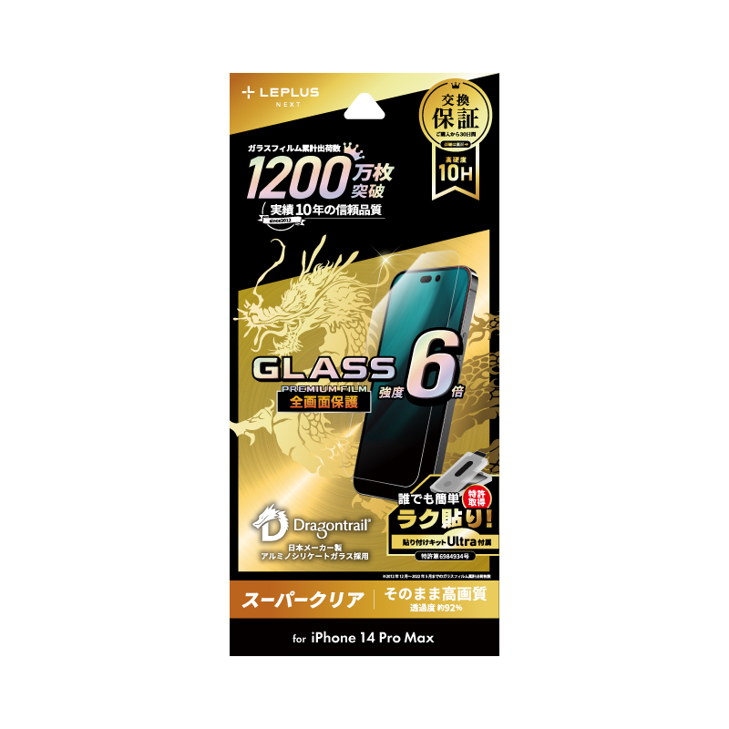 iPhone 14 Pro Max ガラスフィルム「GLASS PREMIUM FILM」 全画面保護 ドラゴントレイル スーパークリア