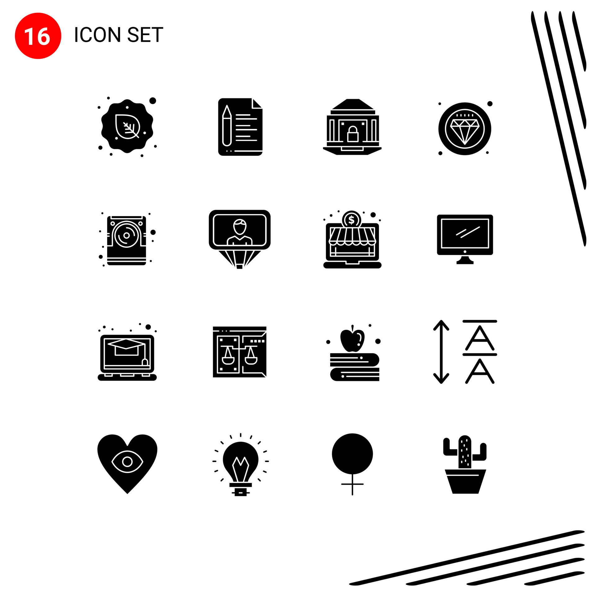 16 concepto de glifo sólido para sitios web móviles y aplicaciones