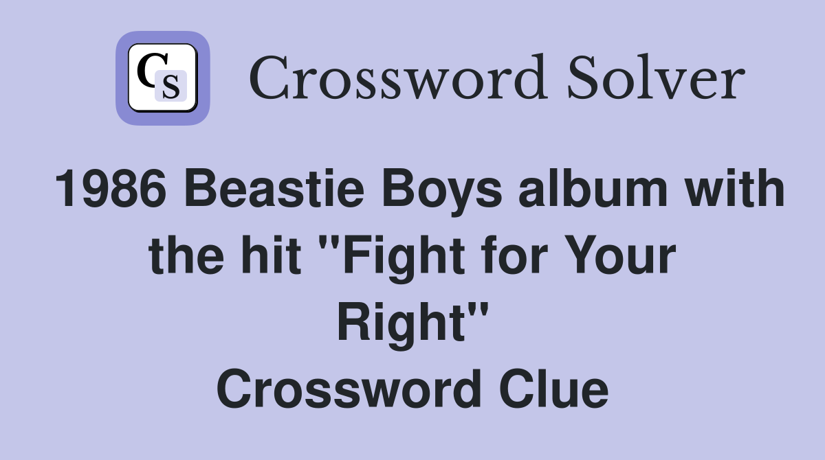1986 Beastie Boys album with the hit quot Fight for Your Right quot Crossword