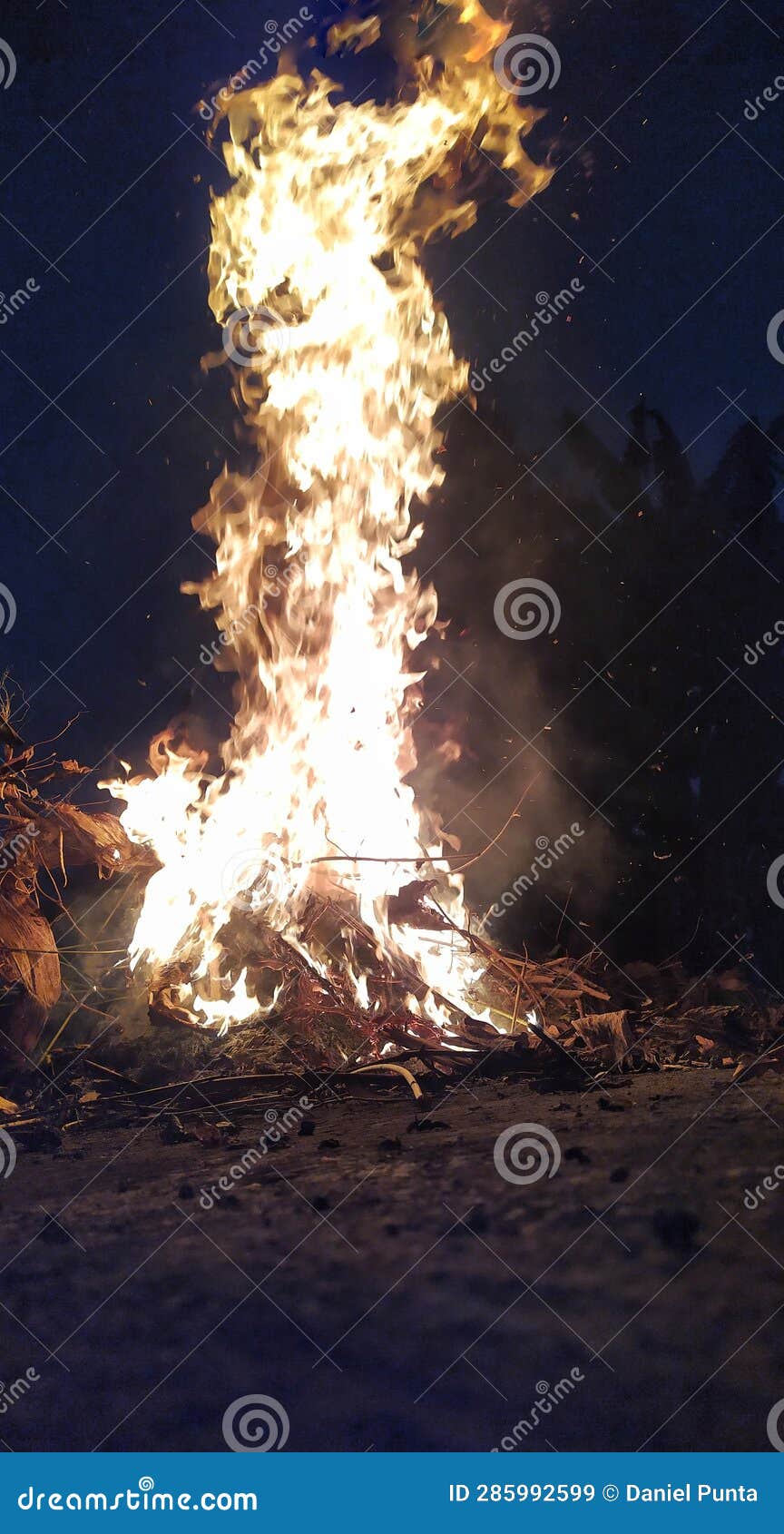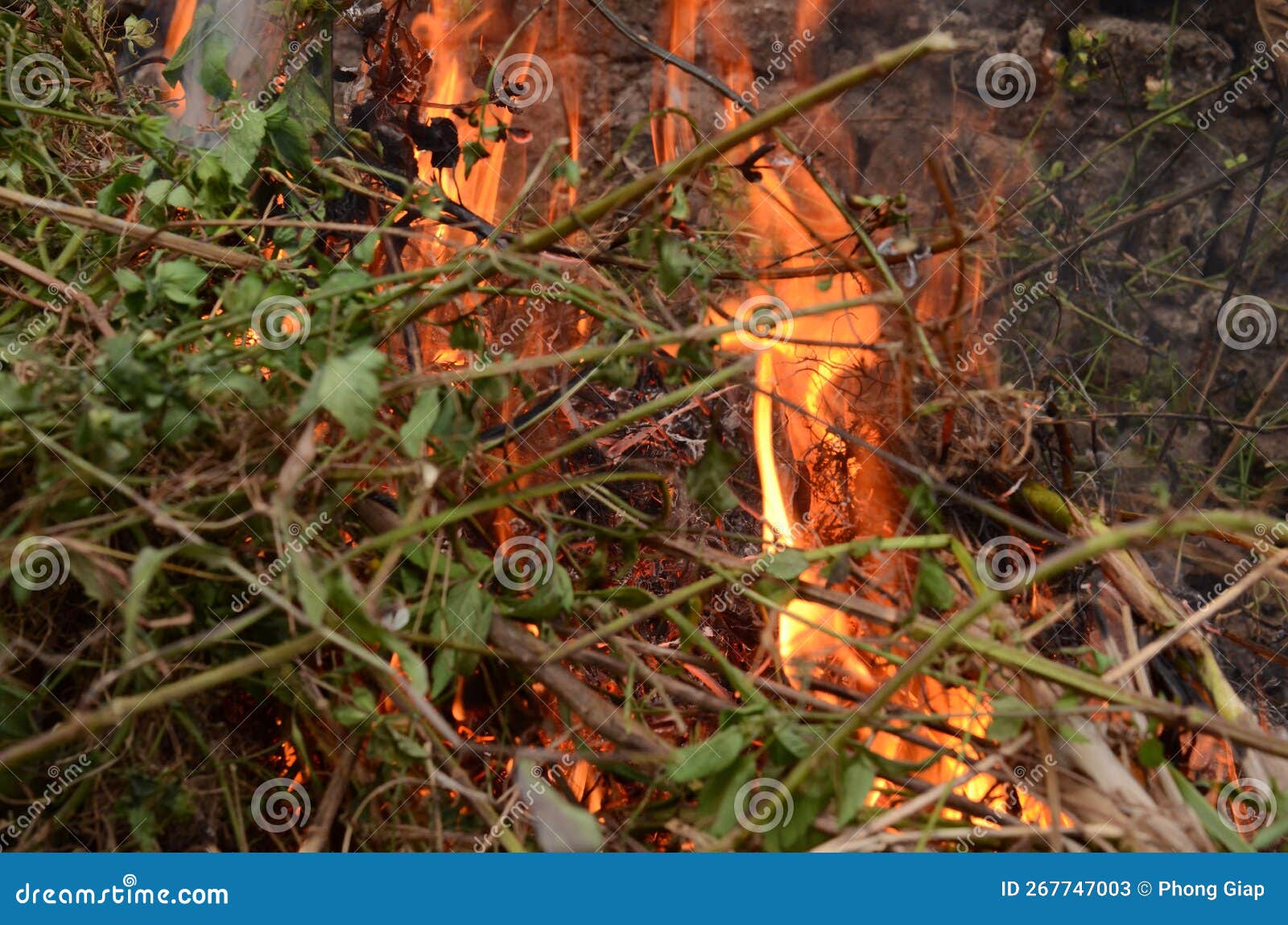 Flame of Burning a Bunch Dry Leaves Stock Image Image of darkness