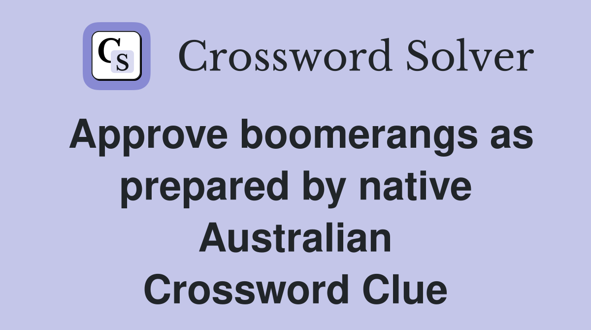 Approve boomerangs as prepared by native Australian Crossword Clue