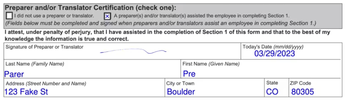 NF 389 I9 form gt gt In Preparer and/or Translator Certification section