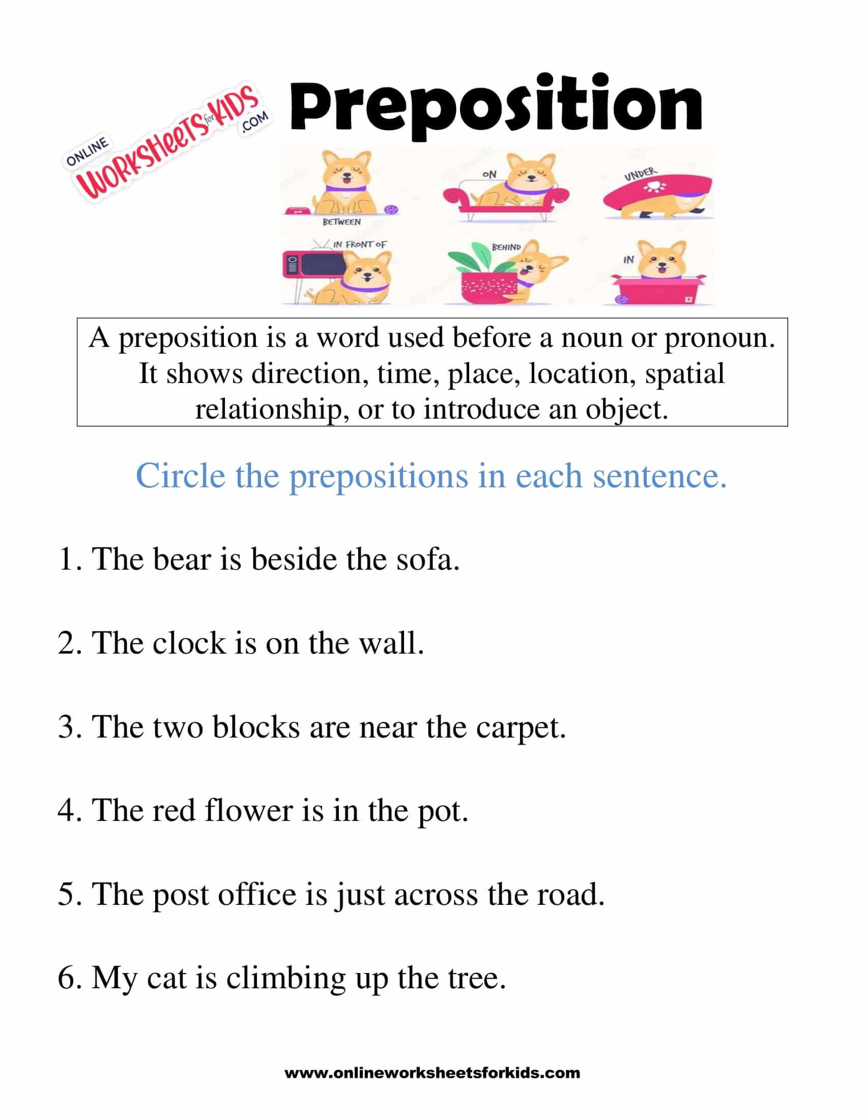 Free Printable Preposition Worksheets