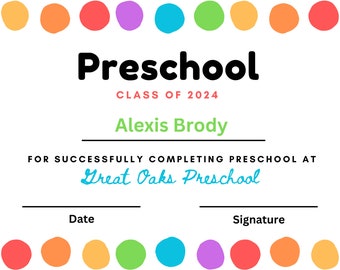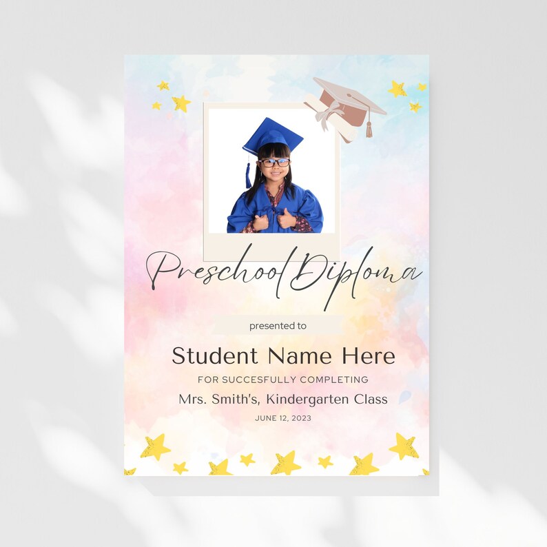 Editable Preschool Graduation Diploma Template Watercolor Background Etsy