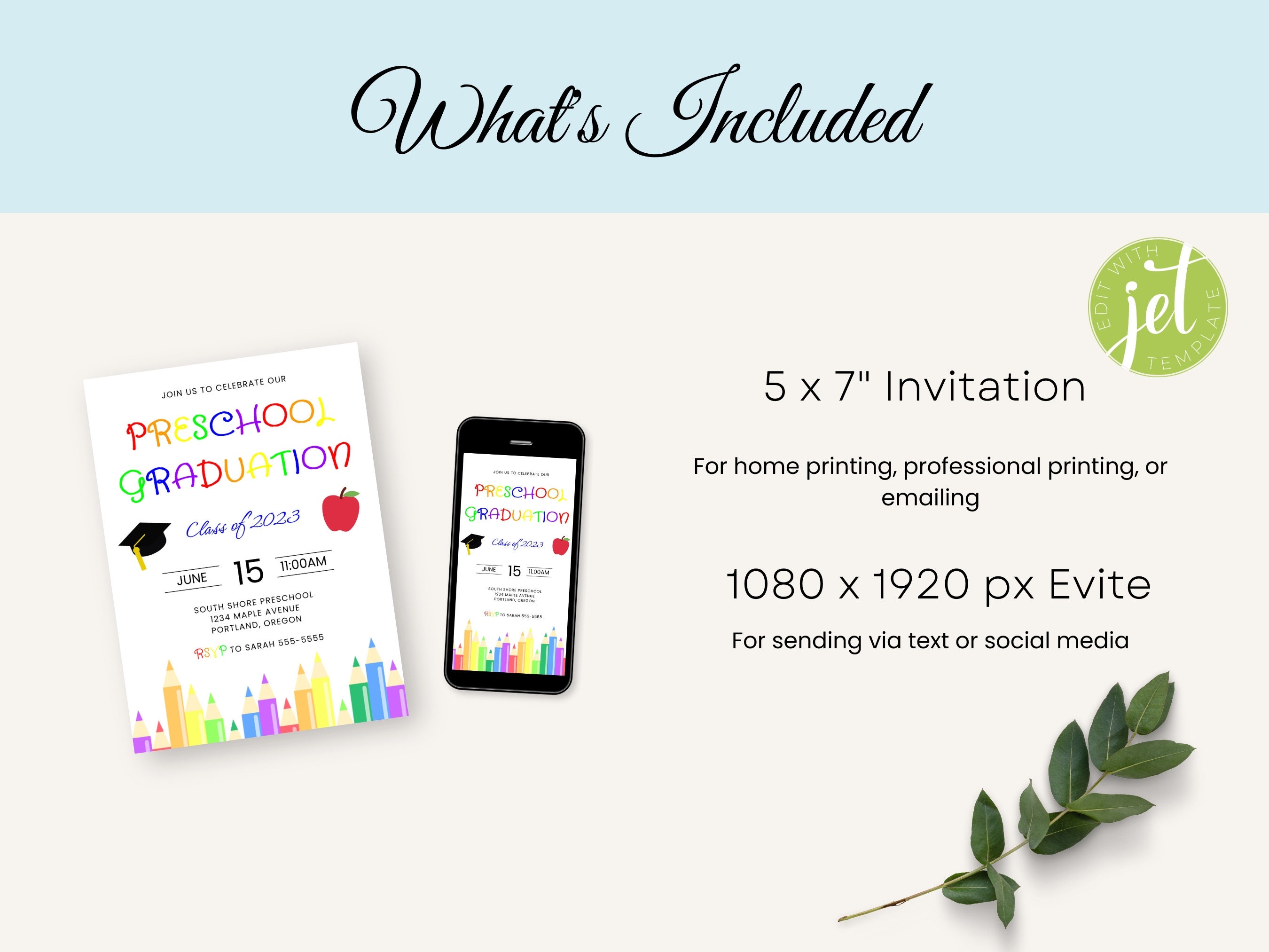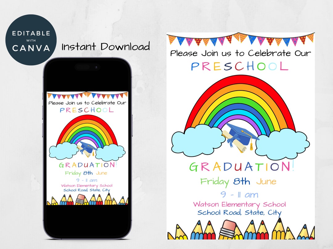 Preschool Graduation Invitation Template INSTANT DOWNLOAD Digital