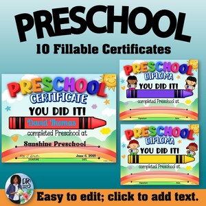 End of the Year Awards: Preschool Diploma Promotion Certificates