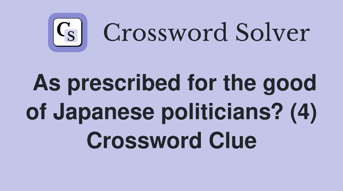 As prescribed for the good of Japanese politicians? (4) Crossword