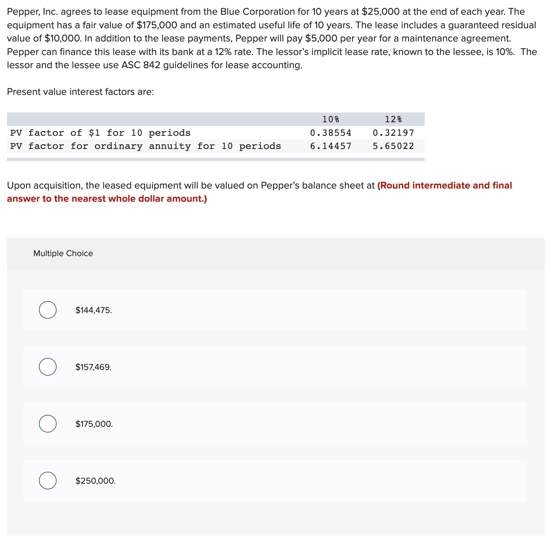 Solved Pepper Inc agrees to lease equipment from the Blue Chegg com