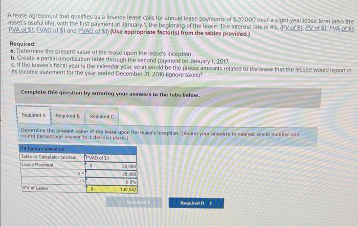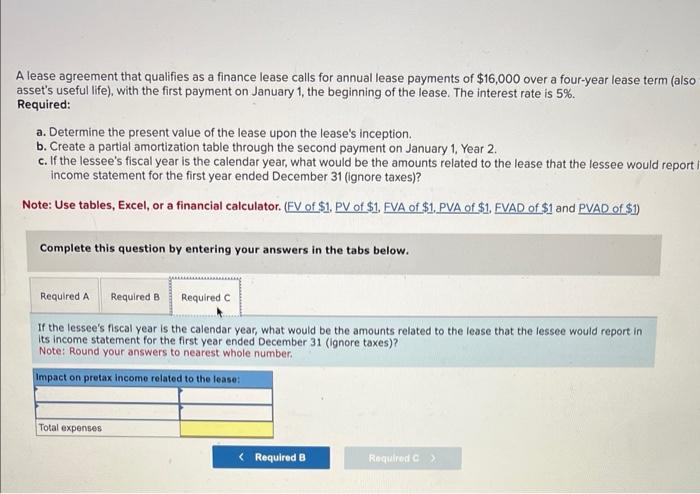 Solved A finance lease agreement calls for quarterly lease Chegg com