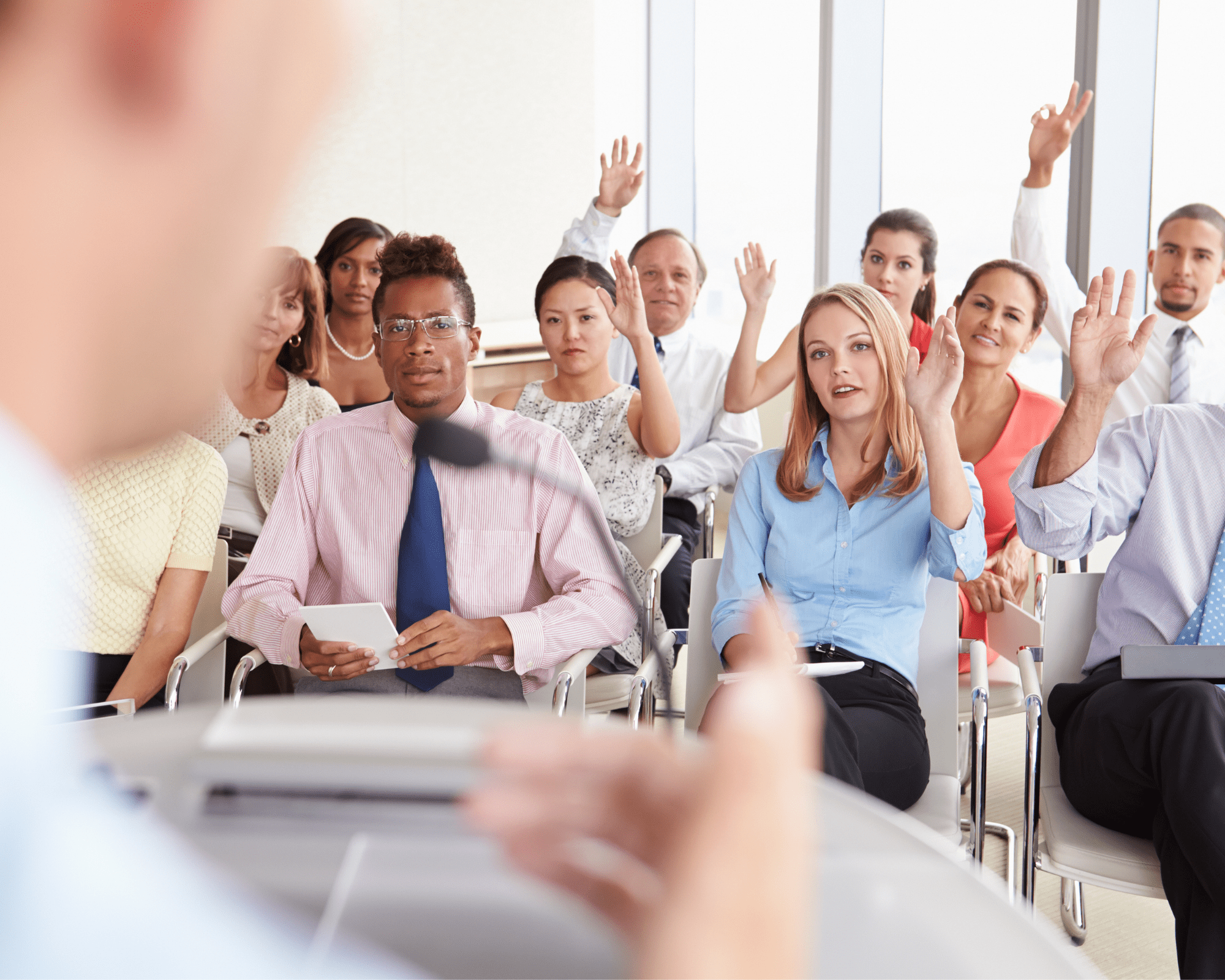 Premium Vector Standing before a sea of faces a speaker commands