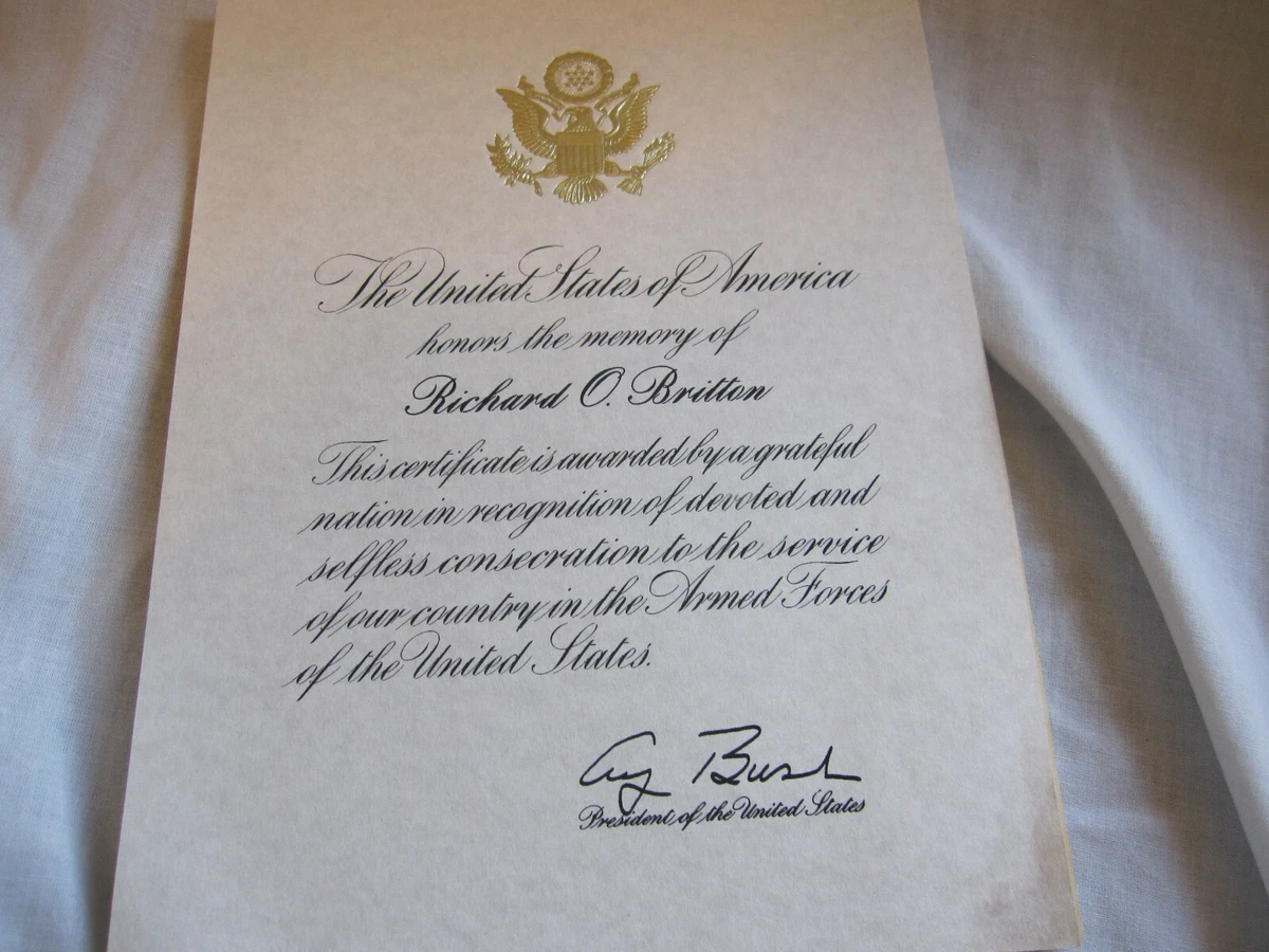 Presidential Memorial Certificate for service Armed Forces RICHARD