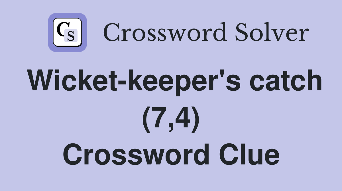 Wicket keeper #39 s catch (7 4) Crossword Clue Answers Crossword Solver