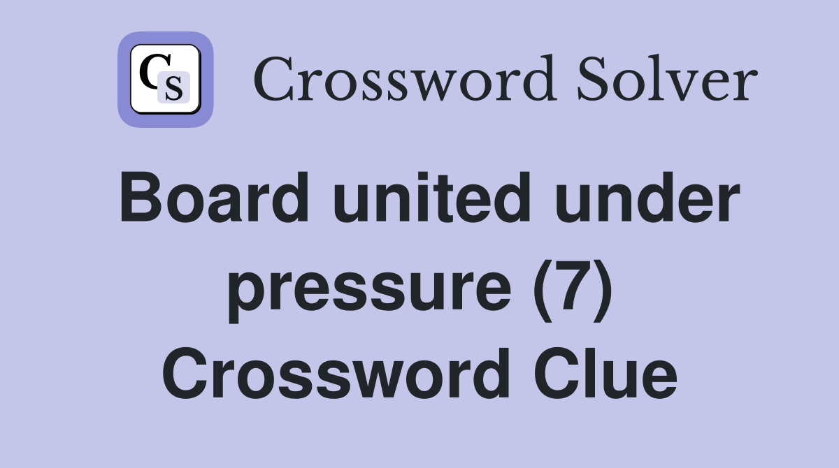 Board united under pressure (7) Crossword Clue Answers Crossword Solver