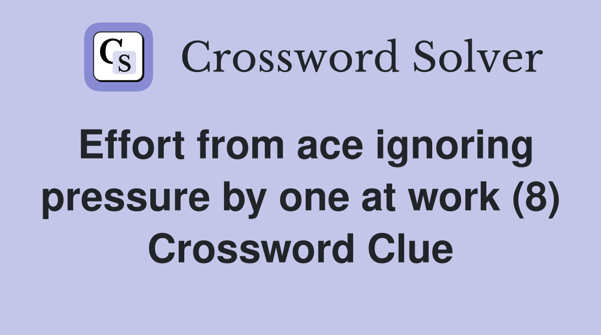 Effort from ace ignoring pressure by one at work (8) Crossword Clue