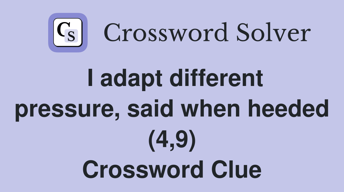 I adapt different pressure said when heeded (4 9) Crossword Clue
