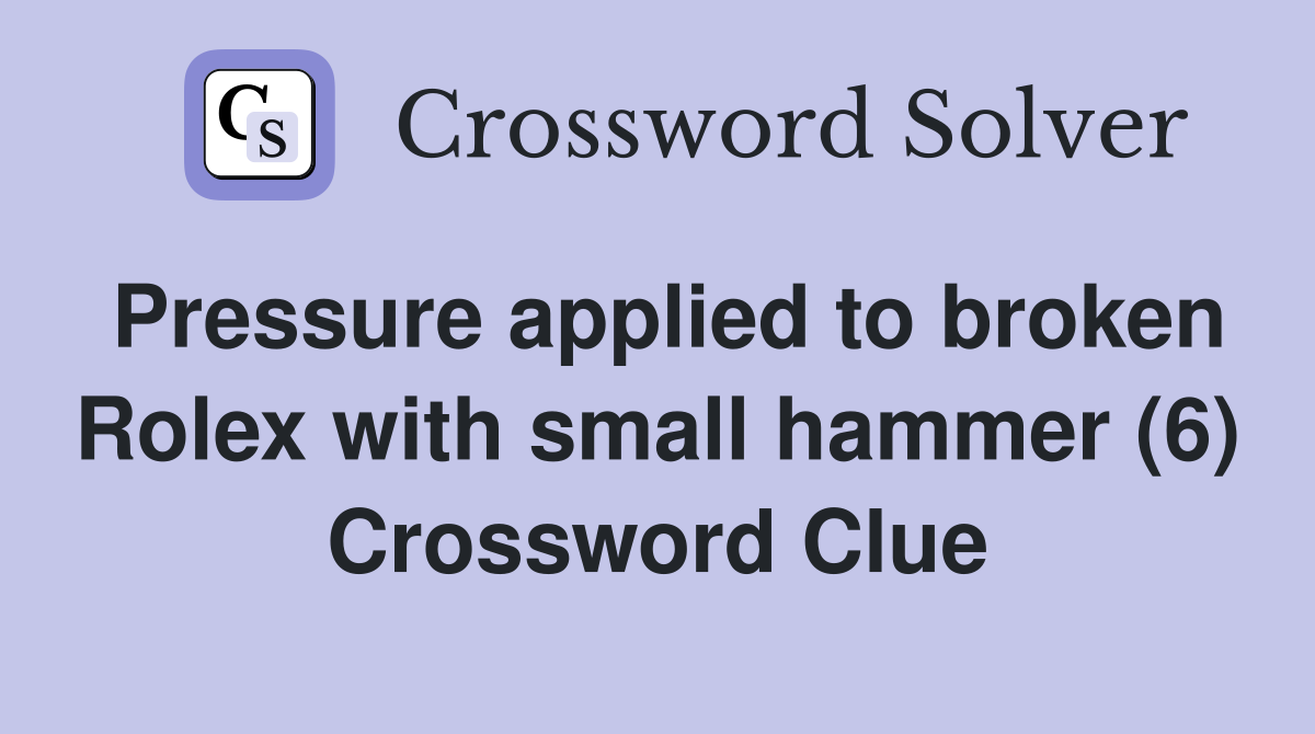 Pressure applied to broken Rolex with small hammer (6) Crossword Clue
