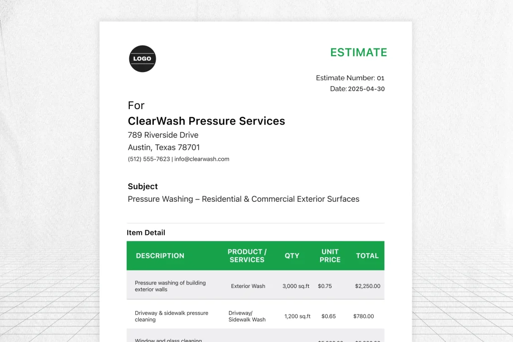 √ Pressure Washing Estimate Template