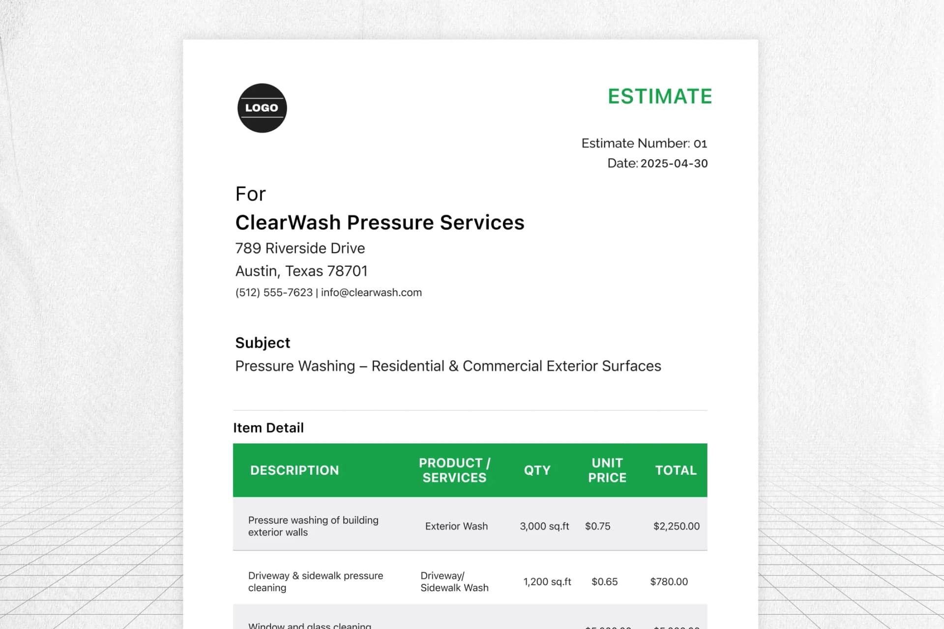 Pressure Washing Estimate Template