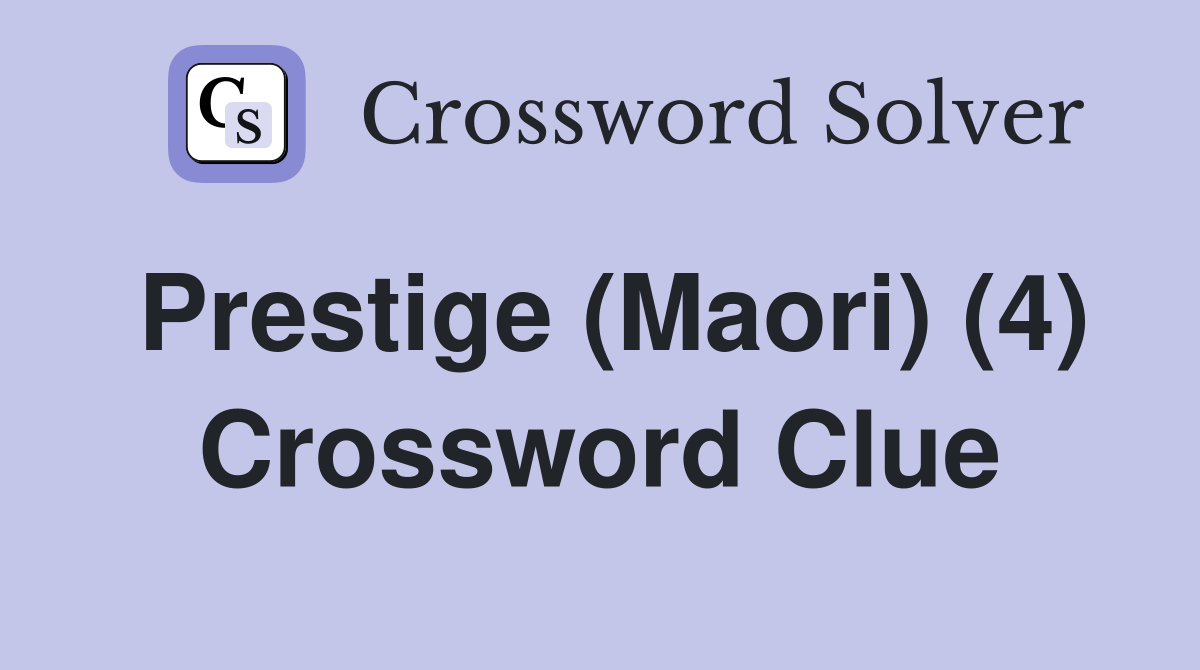Prestige (Maori) (4) Crossword Clue Answers Crossword Solver