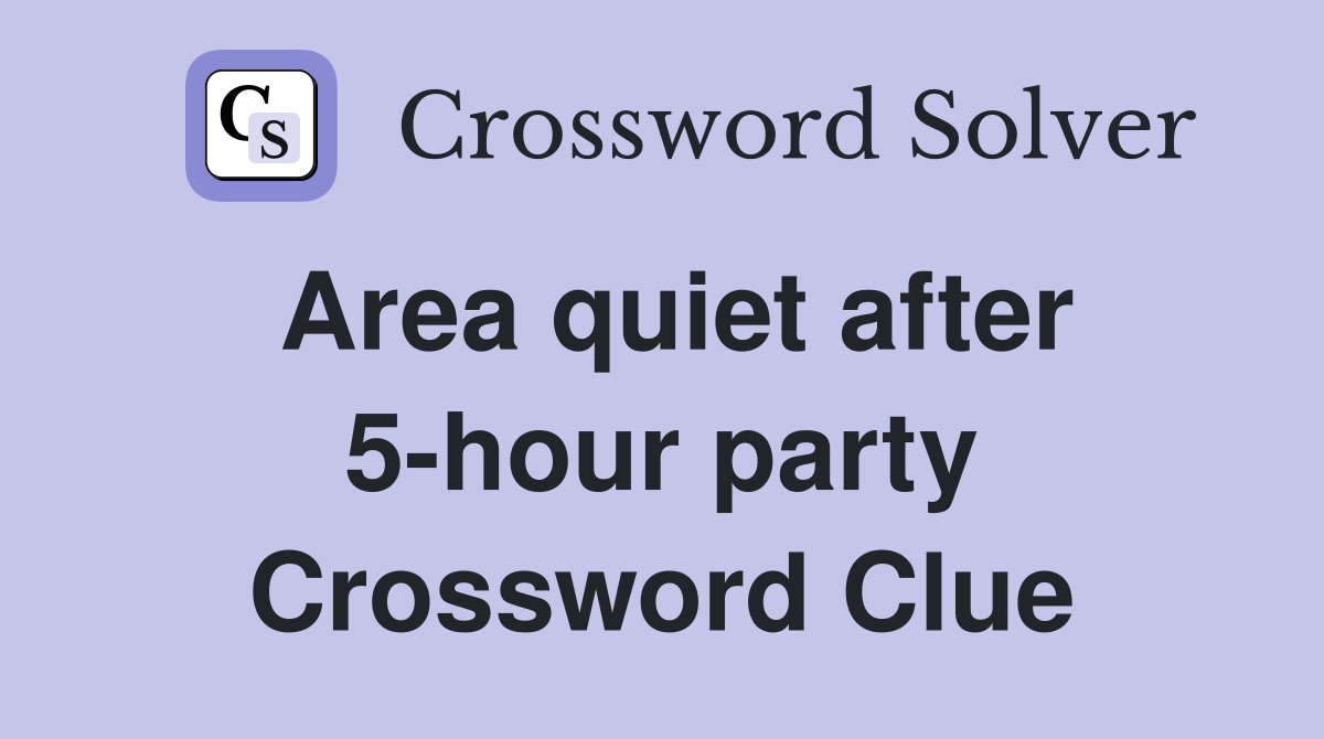 Area quiet after 5 hour party Crossword Clue Answers Crossword Solver