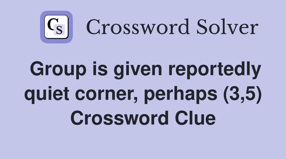 Group is given reportedly quiet corner perhaps (3 5) Crossword Clue