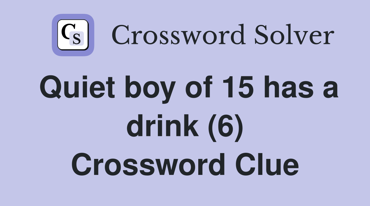 Quiet boy of 15 has a drink (6) Crossword Clue Answers Crossword Solver