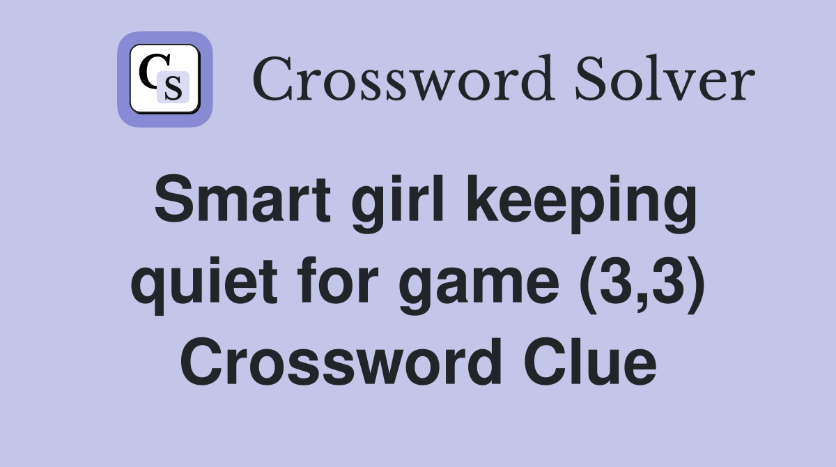 Smart girl keeping quiet for game (3 3) Crossword Clue Answers