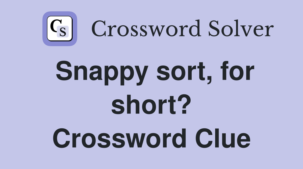 Snappy sort for short? Crossword Clue Answers Crossword Solver