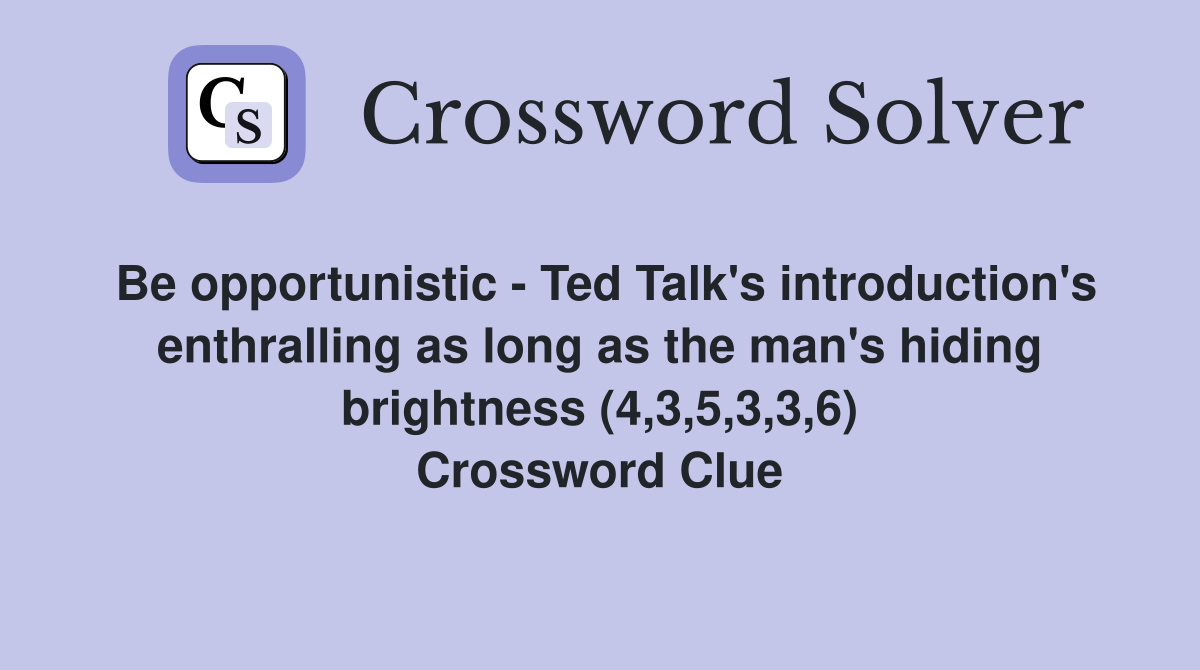 Be opportunistic Ted Talk #39 s introduction #39 s enthralling as long as the