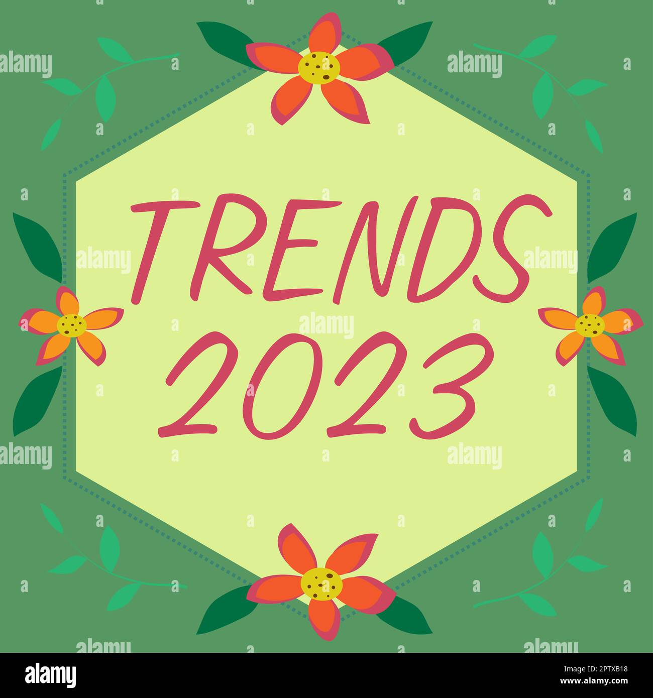 Sign displaying Trends 2023 Conceptual photo Upcoming year prevailing