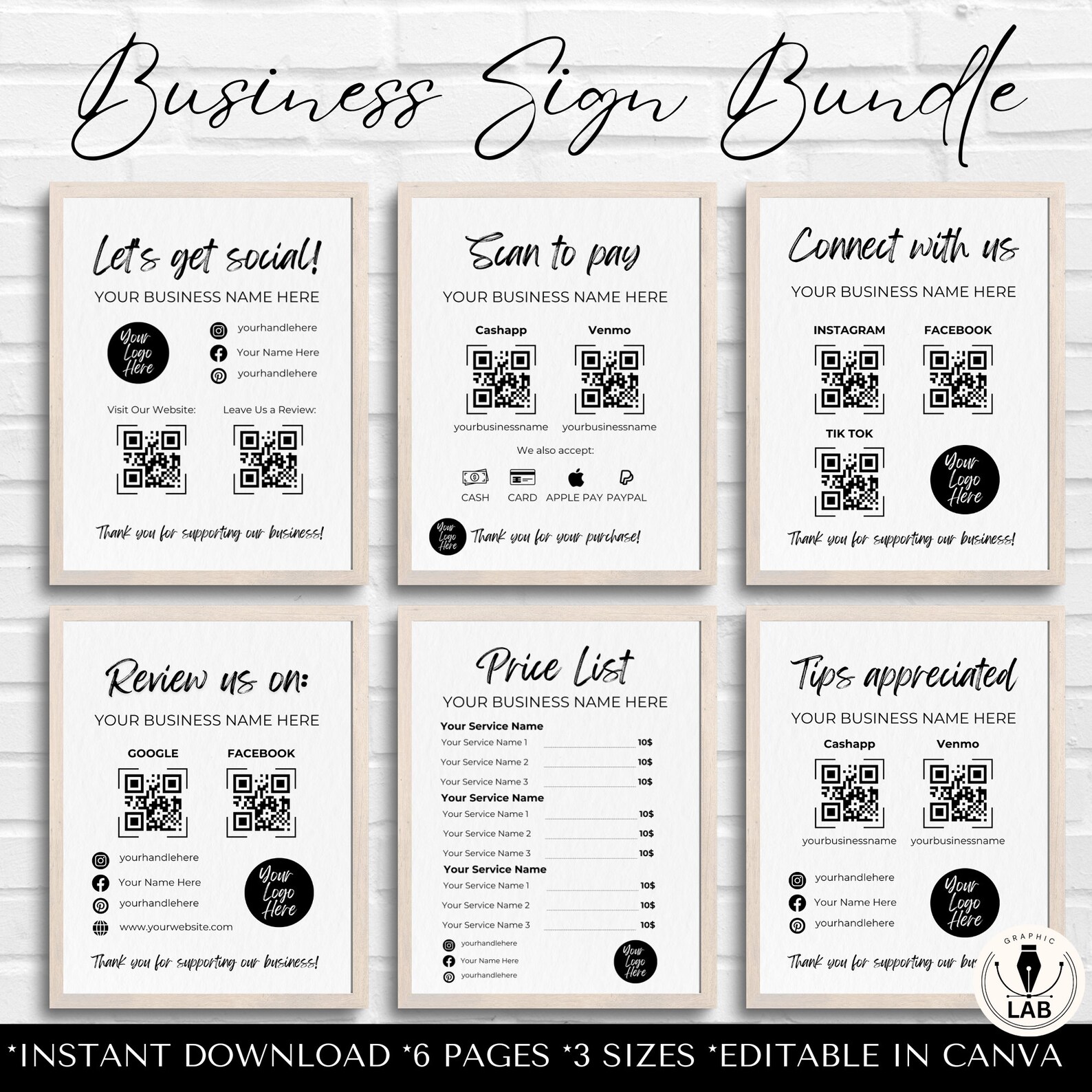 Payment Sign Price List Template Bundle QR Code Sign Template
