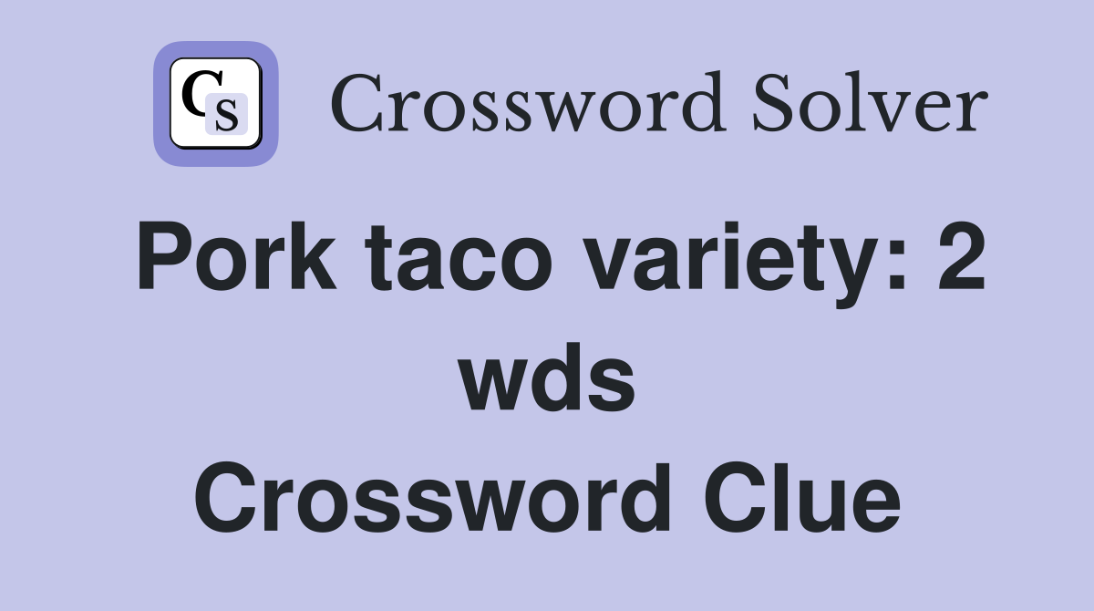 Pork taco variety: 2 wds Crossword Clue Answers Crossword Solver