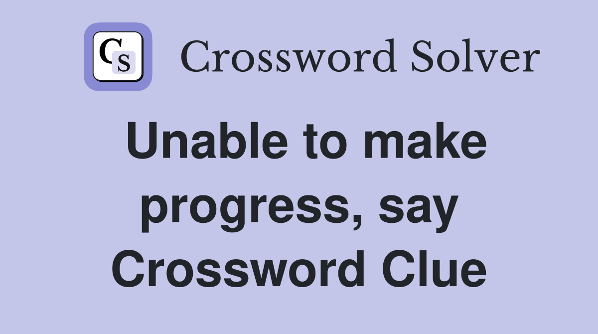 Unable to make progress say Crossword Clue Answers Crossword Solver