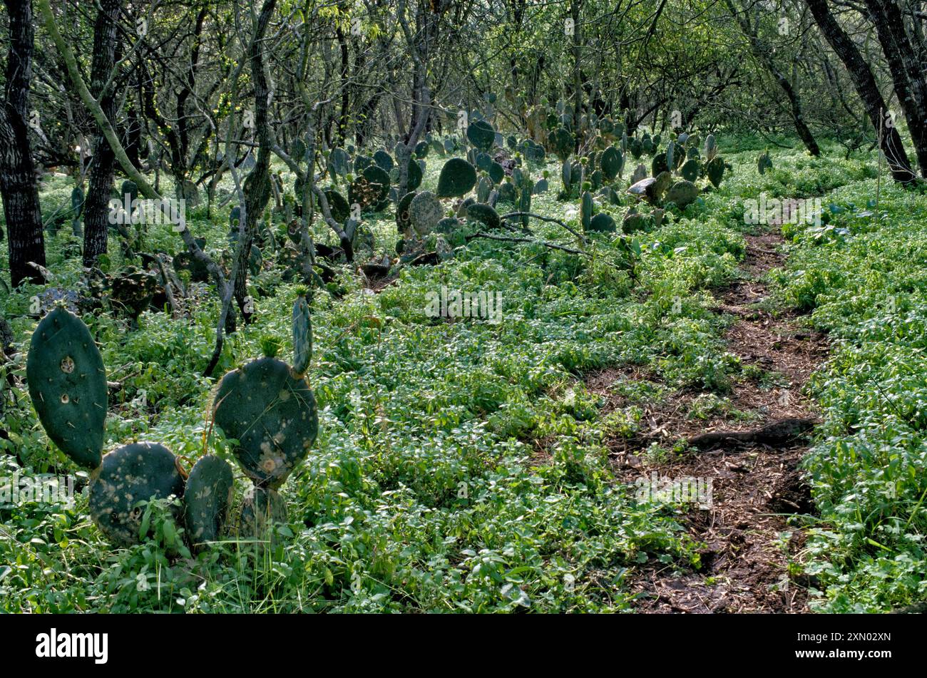 Deer trail prickly pear cacti in mesquite thicket Calliham Unit of